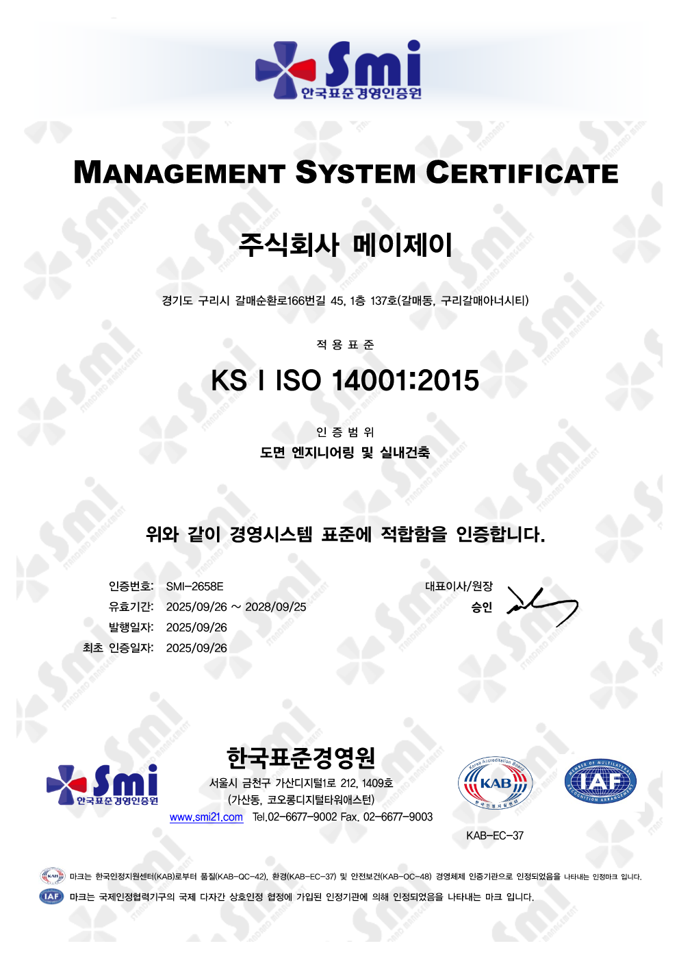 ISO 14001 : 환경경영시스템 작성자관리자 등록일 26-01-08 조회9회 본문 국제 표준 인증 ISO 14001 : 환경경영시스템 ISO 45001 : 안전보건경영시스템 ISO 9001 : 품질경영시스템 목록