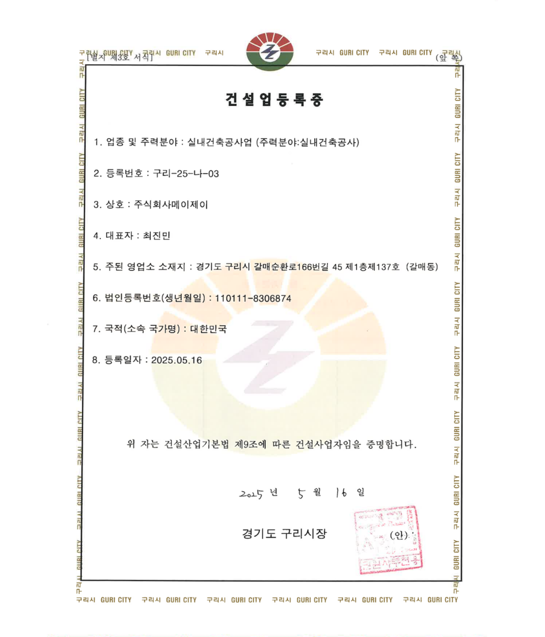 건설업등록증
